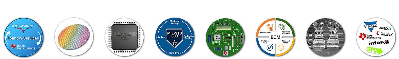 Spirit Electronics’ franchised distribution lines include space- and defense-grade manufacturers of semiconductors, FPGAs, power management, capacitors, interconnects and more.Â