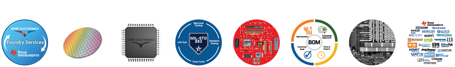 Spirit Electronics’ franchised distribution lines include space- and defense-grade manufacturers of semiconductors, FPGAs, power management, capacitors, interconnects and more.